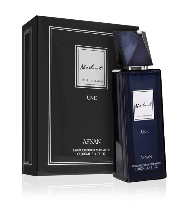 Parfémovaná voda Modest Une Pour Homme je aromatická kořeněná vůně pro muže od designového domu Afnan Perfume. V úvodu vůně vás upoutají kořeněné, podmanivé tóny muškátového oříšku, máty, levandule a pepře. Srdce propojuje tóny ambry, eukalyptu a citrusů. Základ je výrazný s náznaky vetiveru, pižma a cedru.