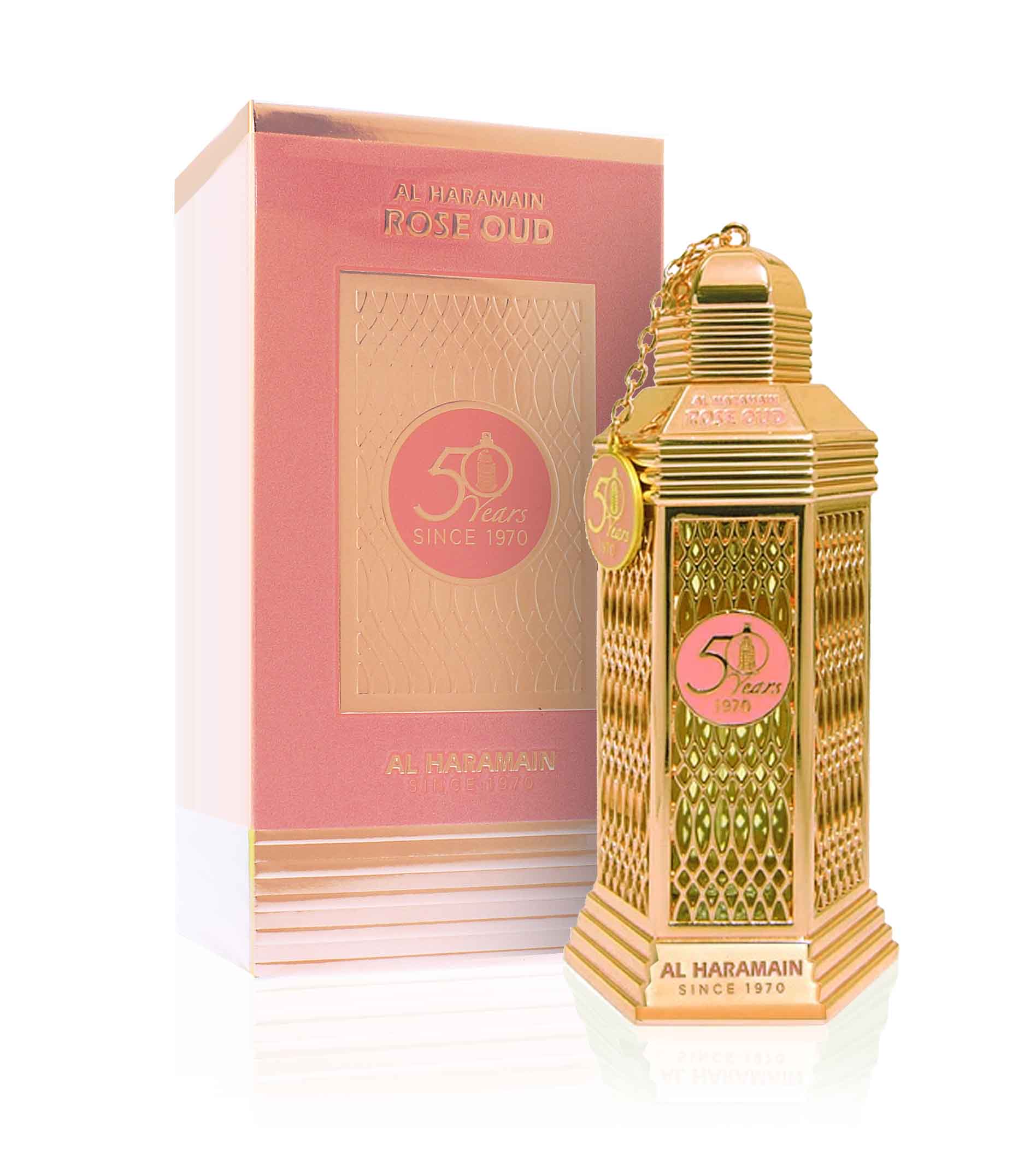 Oslavte 50 let domu Al Haramain s majestátní a sofistikovanou parfémovanou vodou Rose Oud. Luxusní a bohatá směs toho nejlepšího oudu a bohatého aroma růže, tento krásný parfém evokuje vůni čistého luxusu a vášně. Hluboká, bohatá a texturovaná vůně svěžích tónů v kombinaci s hlubokými dřevitými tóny, následovaná základní vůní oudu a pižma. Opravdu majestátní vůně, která je nadčasová, vhodná pro muže i ženy, kteří hledají onu mimořádnou vůni.