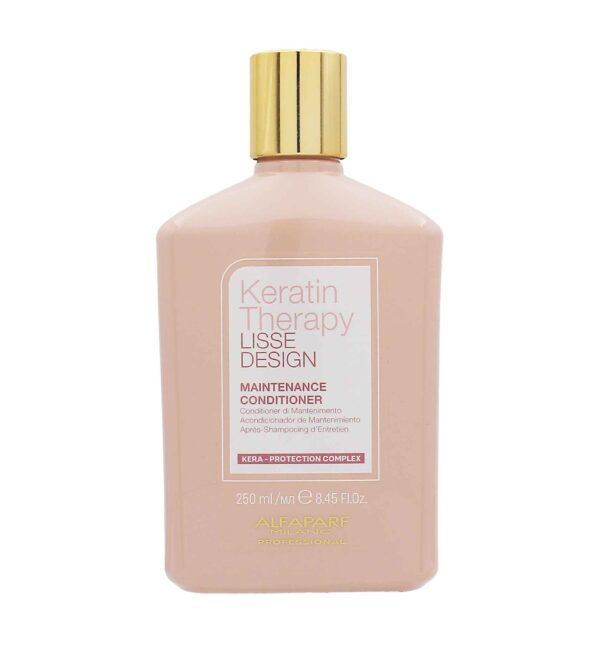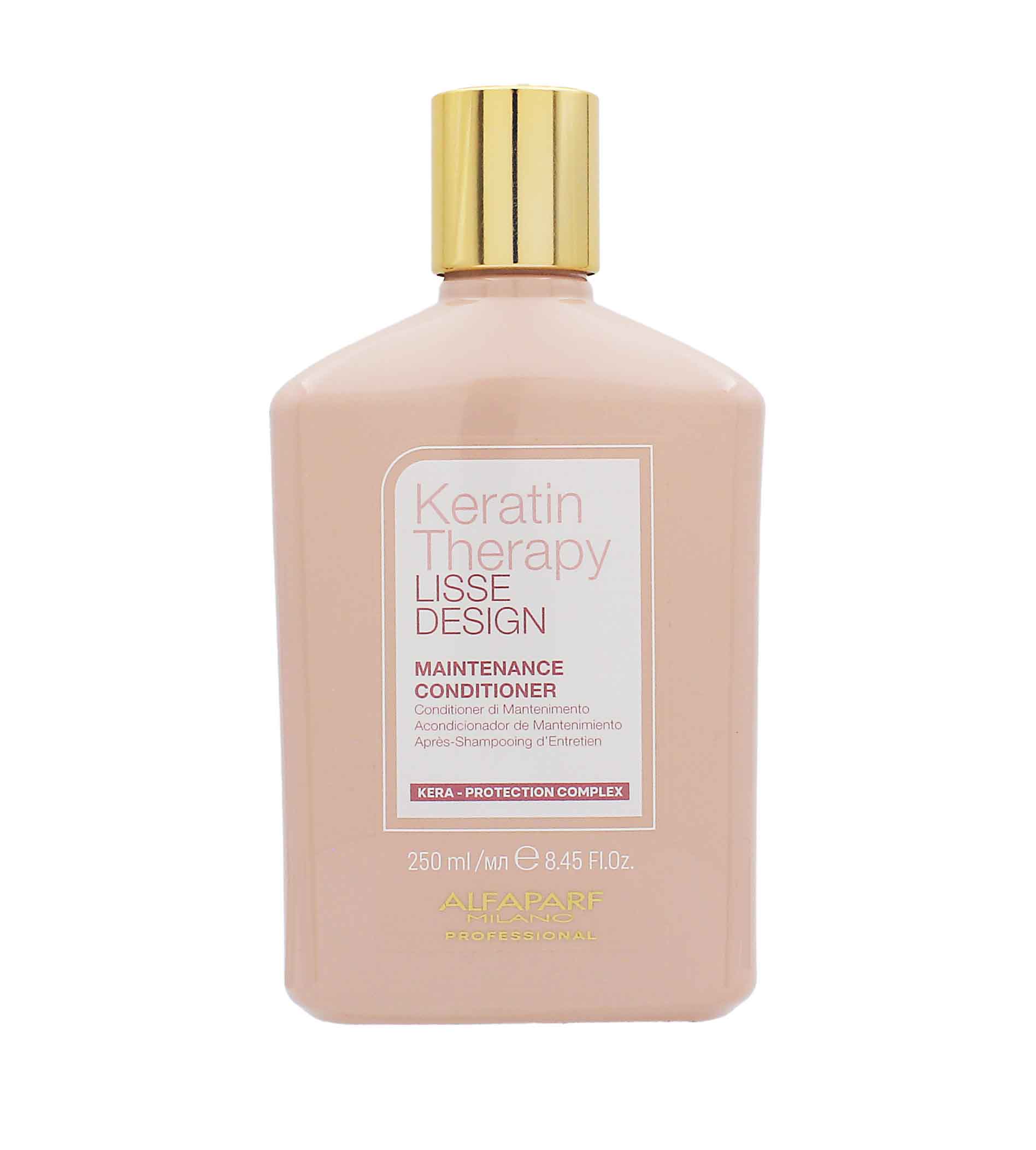Aby vaše vlasy po profesionálním ošetření keratinem vypadaly perfektně po dlouhou dobu, zajistěte jim speciální péči. Kondicionér Alfaparf Milano Keratin Therapy Lisse Design Maintenance Conditioner dodává vlasům maximální dávku hydratace a živin a prodlužuje účinek profesionálního rovnání vlasů až na 4 měsíce. Jedinečný keratinový komplex složený z účinných látek a přírodních ingrediencí působí ve struktuře vlasu, posiluje a vyhlazuje vlasové vlákno od kořínků ke konečkům, zamezuje vysušování vlasů během procesu trvalého rovnání, eliminuje jejich krepatění a zanechává je sametově hebké, hladké a zářivě lesklé. Jemná konzistence nezatěžuje vlasy, usnadňuje jejich rozčesávání, zlepšuje ovladatelnost a udržuje vlasy vitální, pružné a hladké.