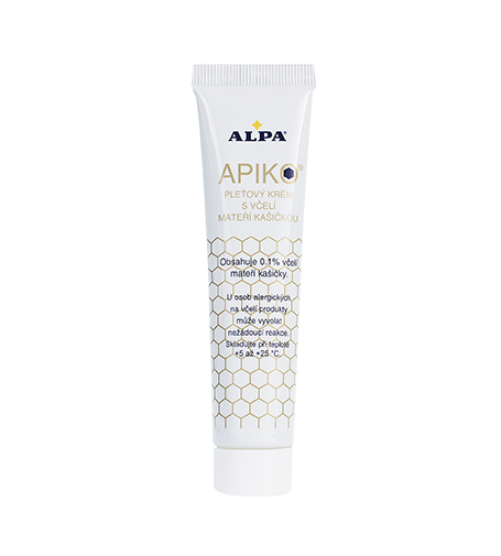 Jemný pleťový krém Alpa Apiko obohacený o včelí mateří kašičku pleť vyživuje, chrání a účinně stimuluje její hydrataci a regeneraci.