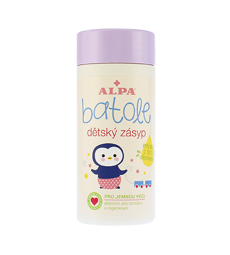 Alpa batole dětský zásyp s extraktem z listu olivovníku s antimikrobiálními účinky je vhodný k ošetření pokožky a díky obsahu heřmánku má také zklidňující účinky. Brání opruzení, zarudnutí a má příjemnou parfemaci. Zásyp chrání dětskou pokožku, má hojivé a antiseptické účinky. Jeho antibakteriální složky urychlují léčení již vzniklých infekcí.
