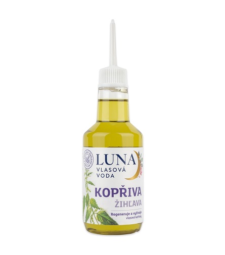 Vlasová voda Alpa Luna Kopřiva působí proti padání vlasů a podporuje jejich růst. Vedle značného množství kyselin obsahuje výtažek z kopřivy také chlorofyl, vitaminy, a minerální látky, které napomáhají regeneraci vlasů a vlasové pokožky.