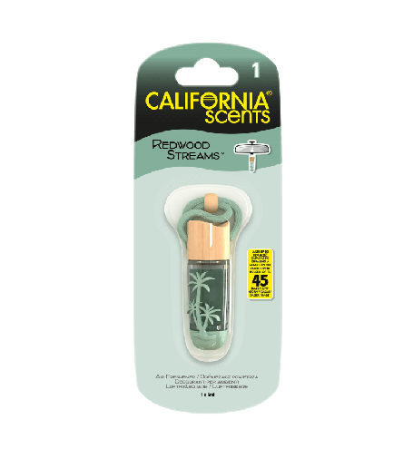 Sekvoje. Pokaždé, když otevřete dveře Vašeho auta, uvítá Vás bohatá, osvěžující vůně ozónu po ranním dešti, smíchaná s borovicovými háji, borovou kůrou a zemitými mechy stromů. Nechte ji viset po dobu až 45 dnů, poté ji vyměňte za jinou závěsnou lahvičku.