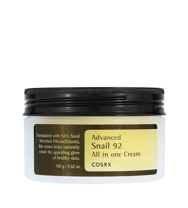Bohatý krém gelového typu Cosrx Advanced Snail 92 All In One Cream obsahuje 92 % šnečího mucinu, který má schopnost regenerovat a vyživovat suchou a podrážděnou pleť. Lehké a nemastné složení se okamžitě vstřebává do pokožky a vytváří na ní ochrannou bariéru, která brání odpařování vlhkosti po velmi dlouhou dobu. Pleťový krém je obohacen také o kyselinu hyaluronovou a panthenol, které hluboce hydratují a vyživují pokožku a působí proti vráskám.