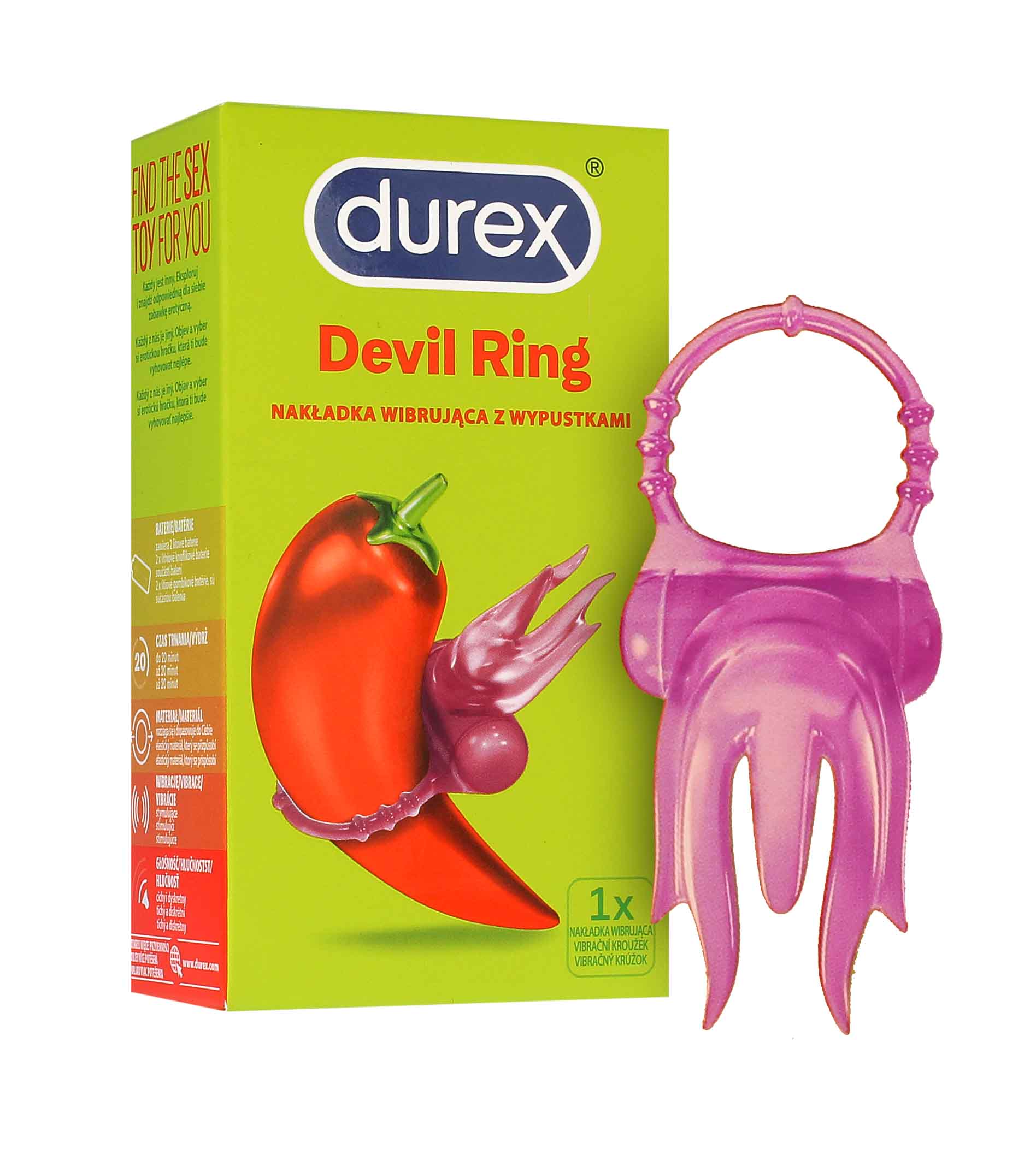 Erekční kroužek na penis Durex Intense Little Devil je vybaven vibračními výstupky pro stimulaci klitorisu, které ženě poskytují lepší prožitek při sexu. Kroužek nasazený na kořen penisu dopomáhá k tvrdší a delší erekci muže a vibrační hlavice s “růžky” ženě poskytuje až 30 minut intenzivních vibrací. Díky elastickému materiálu kroužek padne téměř každému penisu.