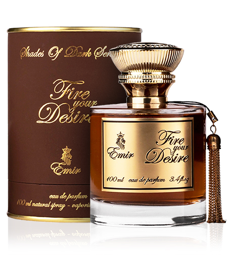 Parfémovaná voda Emir Fire Your Desire je orientální vůně pro muže i ženy. V úvodu lze rozeznat kromě intenzivních kořeněných tónů skořice i lehký závan koňaku, avšak to, co činí tuto vonnou esenci nezapomenutelnou, jsou přetrvávající dřevité tóny santalového a dubového dřeva ve spojení s podmanivou vanilkou a lahodnou pralinkou. Fire Your Desire je lehce sladká a hřejivá, ale zároveň hluboká a dřevitá, ideální pro ty, kteří ocení sofistikovanou a podmanivou vůni.