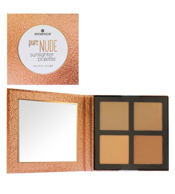 Paletka rozjasňovačů inspirována nejprodávanějším rozjasňovačem od Essence. S paletkou Essence Pure Nude Sunlighter v přirozených bronzových odstínech dodáte pleti letní opálení a elegantní rozjasnění. 4 vrstvitelné teplé bronzové odstíny snadno klouzají po pokožce a dodají vám neodolatelnou záři pro každou příležitost! Pudrová textura je příjemně jemná a lze ji snadno rozetřít – pro dokonalý výsledek. Bez parabenů. Vegan.