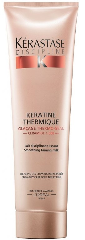 Vlasová péče pro nepoddajné vlasy Kerastase Discipline Keratine Thermique Milk je přípravek, který okamžitě zkrotí nepoddajné vlasy. Vyhlazuje vlasové vlákno, bojuje proti zacuchávání a krepatění. Vlasy budou po použití jemné, lehké a uhlazené.
