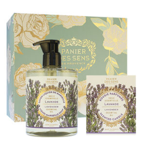 Panier Des Sens Relaxing Lavender dárková sada tekuté mýdlo 500 ml + vonná svíčka 180 g