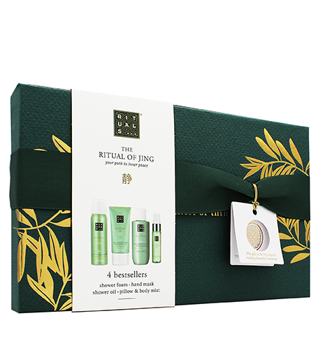 Rituals The Ritual Of Jing Small dárková sada sprchová pěna 50 ml + tělový krém 70 ml + suchý olej na tělo a vlasy 50 ml + sprej na polštář a tělo 20 ml