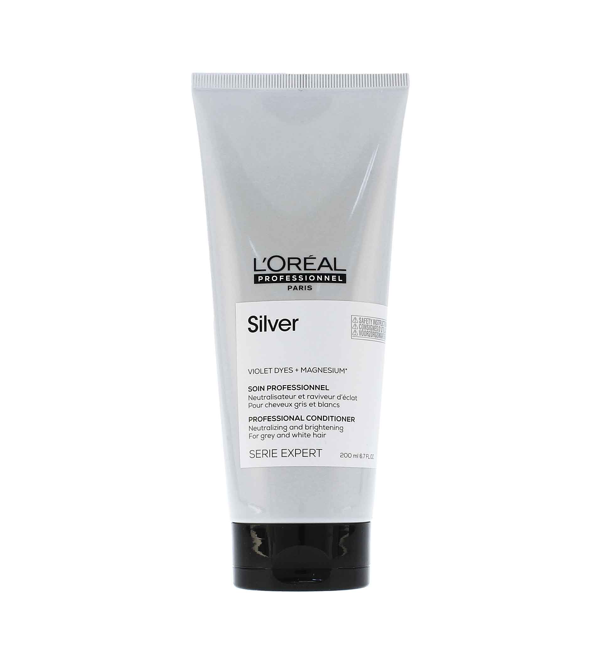 Nechte vyniknout přirozenou krásu šedých, bílých nebo odbarvených vlasů a podpořte účinek šamponu s neutralizačním a rozjasňujícím kondicionérem L’Oréal Professionnel Serie Expert Silver. Kondicionér obohacený o fialové pigmenty a hořčík, velmi dobře neutralizuje nežádoucí syté až mosazné odlesky na světlých vlasech, a navracím barvě ledově chladný tón. Příjemná krémová konzistence se velmi dobře vstřebává do hloubky vlasů a usnadňuje jejich rozčesávání a následnou úpravu. Vaše vlasy budou zářivě lesklé a zdravé nejen na pohled, ale také na dotek.