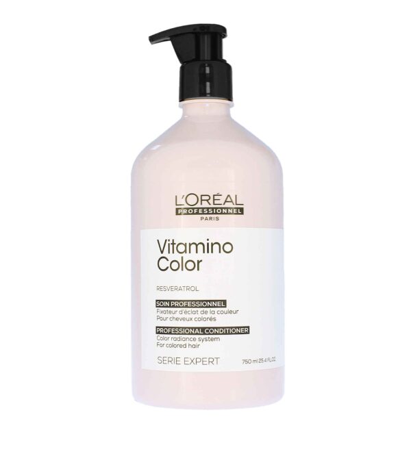 Zdůrazněte krásu barvených vlasů, obnovte jejich zdravý vzhled a udržte zářivé a intenzivní tóny barev na maximum. Kondicionér pro zářivou barvu vlasů L’Oréal Professionnel Serie Expert Vitamino Color usnadňuje rozčesávání vlasů, zlepšuje jejich ovladatelnost, prodlužuje zářivost a intenzitu barev a zanechává vlasy hebké a lehké bez pocitu zatížení. Navíc díky svému složení, které je obohacené o přírodní polyfenol resveratrol zabrání blednutí barvy a při použití v kombinaci se šamponem ze stejné řady Serie Expert Vitamino Color barva vydrží až 8 týdnů.