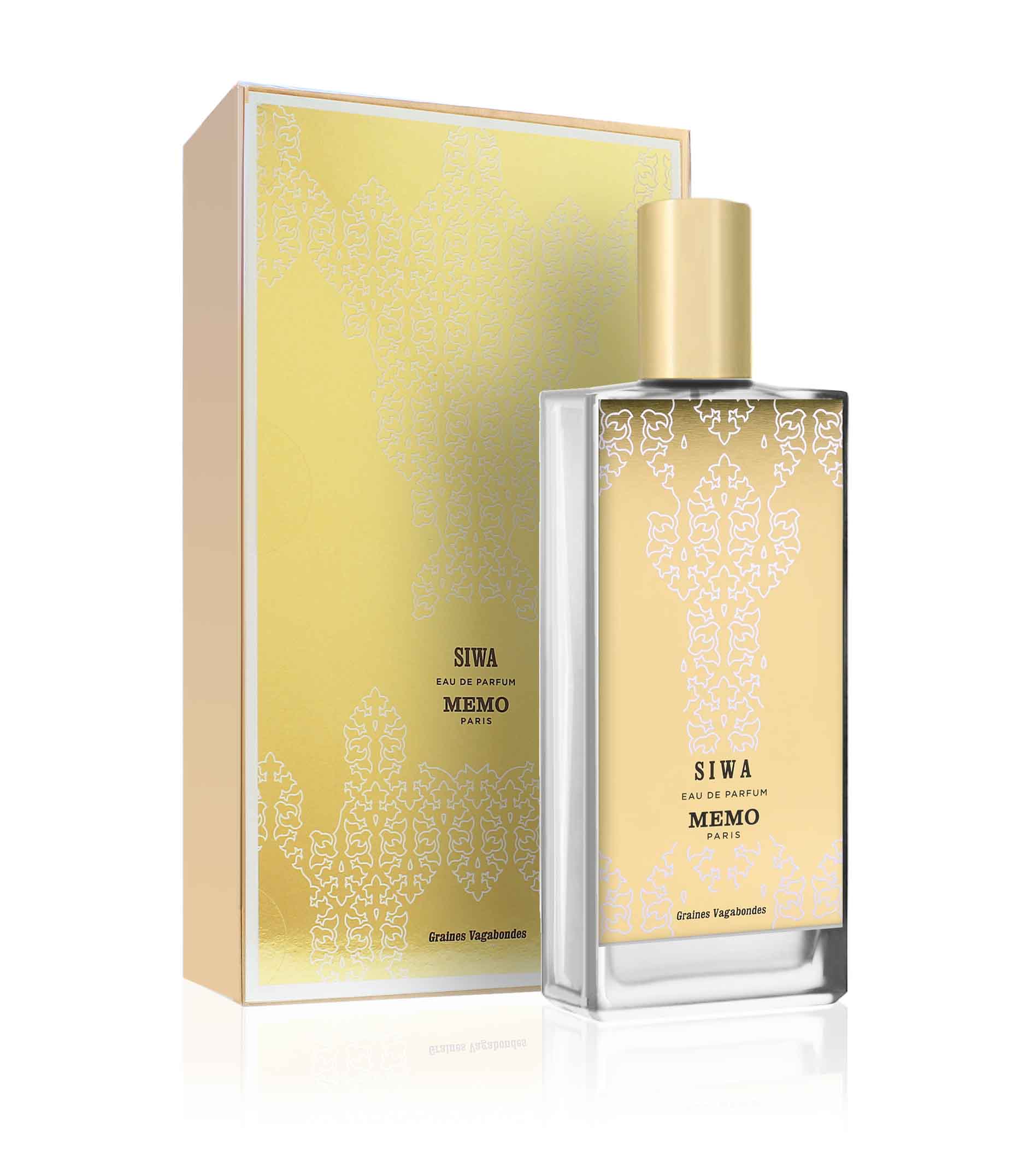 S dámskou parfémovanou vodou Siwa chtěla značka Memo Paris popsat sladkost lásky pod spalujícím sluncem největší písečné pouště světa. Dotek vanilky vklouzne do uklidňujícího objetí cereálií. Ve vzdálené oáze Siwa se může kdokoli poradit s věštci, stejně jako kdysi Alexandr Veliký a Kleopatra, aby odhalil svůj osud a uskutečnil jej. Výkřiky stoupají k nebi jako zaříkadla a parfémovaná voda Siwa kreslí noc, její vůně je…nesrovnatelná.