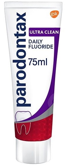 Zubní pasta Parodontax Ultra Clean byla speciálně vyvinuta na pomoc při krvácení dásní. Předností zubní pasty Parodontax Ultra Clean je speciální technologie malkron, která používá vysokou hladinu mimořádně jemného sodíku k zastavení krvácení dásní a k účinnějšímu odstranění množství plaku ve srovnání s běžnou zubní pastou. Její složení je obohaceno o minerální soli, rostlinné výtažky a fluorid, který pomáhá chránit zuby před vznikem zubního kazu.