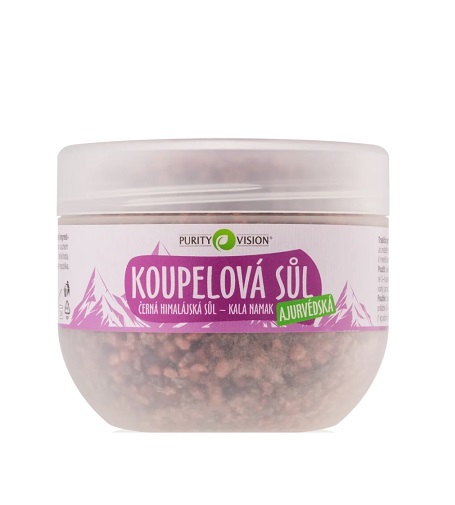 Ajurvédská koupelová sůl Purity Vision je tradiční přírodní černá vulkanická sůl z oblasti indických Himalájí, vhodná pro terapeutické nebo relaxační koupele pro všechny typy pokožky, zejména je vhodná při kožních problémech, jako je lupénka, alergie nebo ekzémy. Koupel se vstřebává kůží, a proto se skvěle hodí k uvolnění namožených svalů i zatuhlých kloubů. Celkově zlepšuje prokrvení pokožky a lehce ji tonizuje.