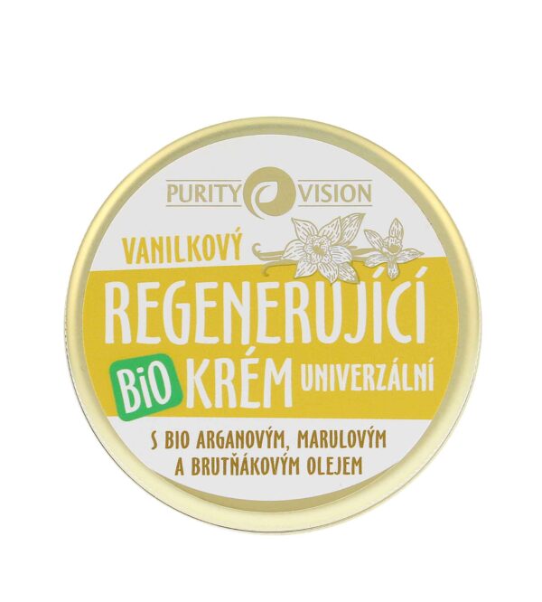 Purity Vision Bio Vanilkový regenerující krém vás zahalí do sladce voňavého vanilkového závoje. Tento univerzální krém nabízí intenzivní péči, která je vhodná zejména pro suchou pokožku a pleť. Díky obsahu bambuckého másla bude pleť chráněná a sametově hebká. Kombinace arganu a brutňákového oleje propůjčuje krému jedinečné pečující vlastnosti, které vaši pokožku regeneruje a hydratuje. Krém se skvěle hodí i na masáže nebo jako péče po opalování. Odměnou vám bude jemná a hebká pokožka, provoněná sladkou vůní vanilky.