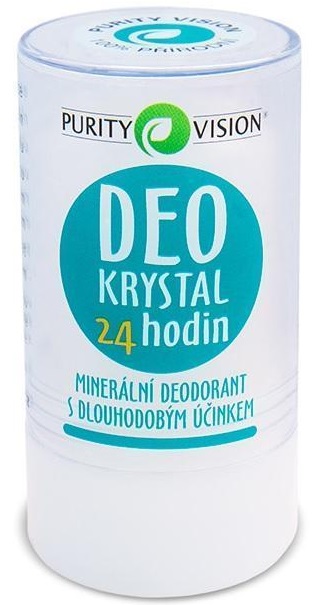 Purity Vision Deo Krystal 24 hodin je čistě přírodní deodorant 100% složený z minerální soli – Potassium Alum (kamenec).