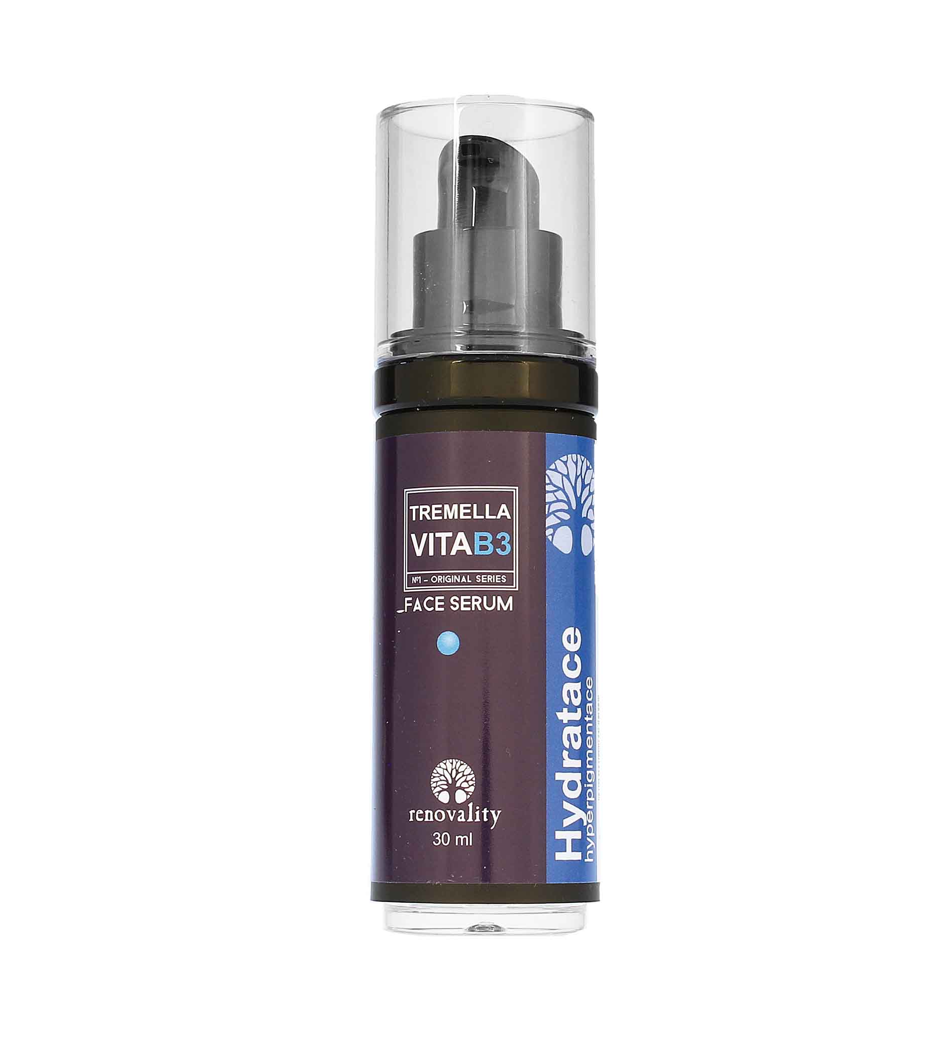 Revoluční elixír pro vaši pleť – hydratační pleťové sérum Renovality Tremella VitaB3 s výtažkem z houby Tremella, známé jako veganská náhrada kyseliny hyaluronové. Houba Tremella dokonale hydratuje pokožku tím, že na sebe váže molekuly vody a udržuje ji jemnou a hladkou. Je také bohatá na rostlinný kolagen, vitamin C a aminokyseliny, které zvyšují hladinu kolagenu, posilují kožní bariéru, minimalizují výskyt jizev a pórů a rozjasňují pleť. Spolu s vitaminem B3 vyrovnává tón pleti a účinně redukuje hyperpigmentaci.
