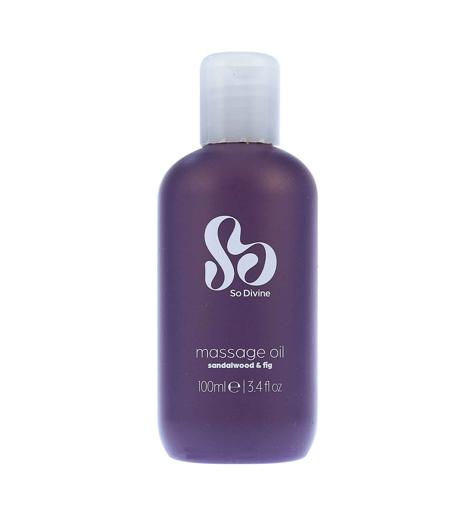 Luxusní masážní olej So Divine Massage Oil Sandalwood & Fig provoněný svůdným a uklidňujícím aroma fíku a santalového dřeva obohatí, uvolní a oživí mysl i tělo a umožní rozkvést vaši smyslnost. Uchovejte v chladu a suchu. Chraňte před přímým slunečním zářením.