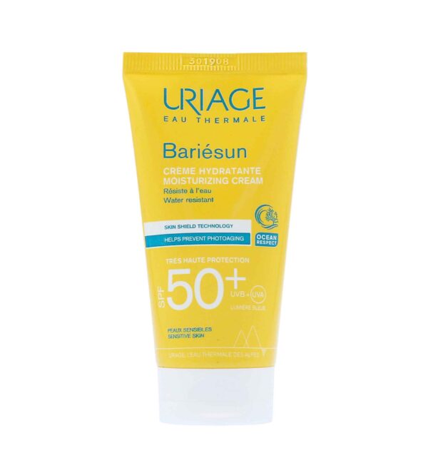 Hydratační krém na opalování s vysoce kvalitním komplexem filtrů Uriage Bariésun Moisturizing Cream SPF 50+ poskytuje velmi vysokou ochranu proti UVA a UVB paprskům, volným radikálům a zabraňuje vysoušení kůže. Jeho jemná, voděodolná a nemastná textura zaručuje obnovu pocitu pohodlí po každém použití. Složení obohacené o aquasponginy a termální vodu Uriage intenzivně chrání pokožku před vysoušením, zatímco vitamíny C a E zaručují extra ochranu. Hypoalergenní složení.