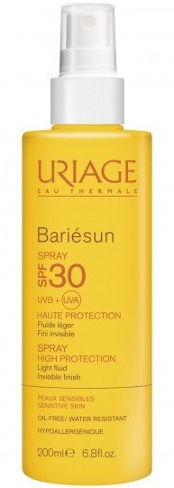 Opalovací mléko ve spreji Uriage Bariésun Spray SPF 30 poskytuje velmi vysokou ochranu proti UVA a UVB paprskům, volným radikálům a zabraňuje vysoušení kůže. Zabraňuje stárnutí pokožky díky termální vodě Uriage, která bojuje proti škodlivým vlivům slunečního záření, složení s poslední generací filtrů poskytuje velmi vysokou ochranu proti UV záření, fotostabilitu a široké pokrytí UVA a UVB paprsků, intenzivně hydratuje. Před pobytem na slunci jemně naneste rovnoměrnou vrstvu tak, abyste pokryli celý povrch odhalené pokožky. Aplikaci opakujte zvláště po opocení, plavání či osušení.