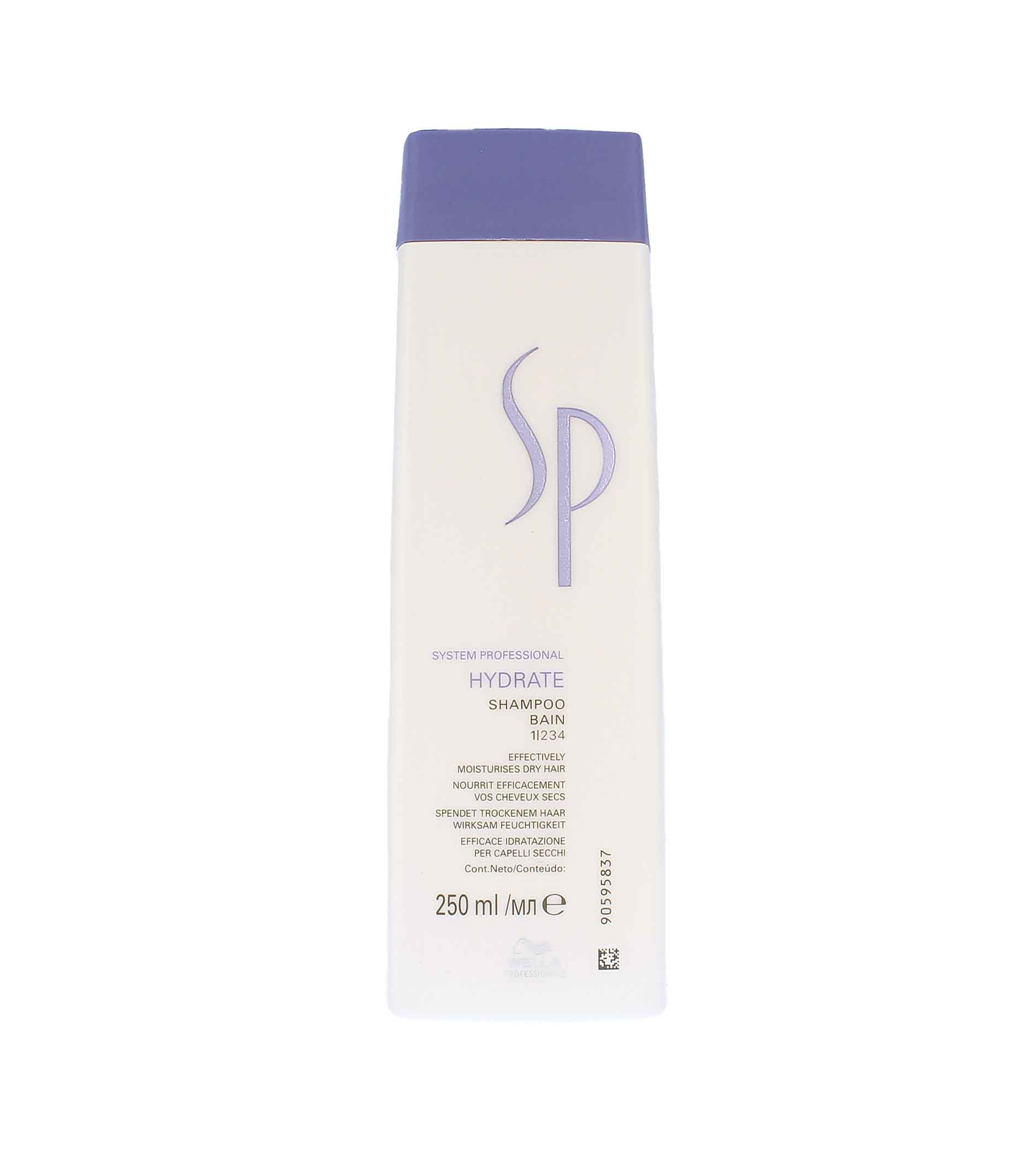 Šampon pro normální až suché vlasy Wella Professionals SP Hydrate se speciálním aktivním zvlhčujícím komplexem Active Moisture Complex poskytuje vlasům dlouhotrvající hydrataci, jemnost a aktivní ochranu proti vysušení během mytí. Šampon má jemně čistící složení s obsahem glycerinu a D-Panthenolu, které zbaví vlasy každodenních nečistot a poskytnou dlouhotrvající hydrataci. Vlasy díky pravidelnému používání šamponu získají okamžitou jemnost, hebkost a hydrataci bez zatížení.